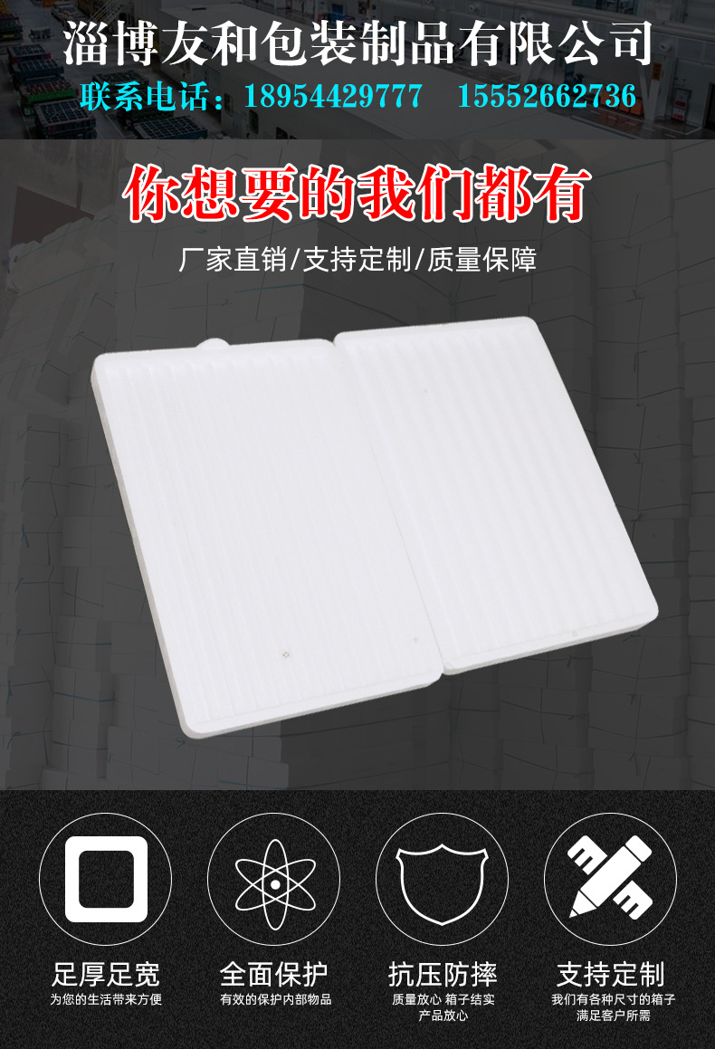 介紹參數圖冊 ????淄博友和包裝制品有限公司是專業的山東泡沫包裝箱加工廠家,本廠主要產品有:泡沫包裝箱,泡沫保鮮箱,水果蔬菜泡沫包裝箱,水果蔬菜泡沫保鮮箱,瓷磚泡沫包裝箱等,產品暢銷全國,深受用戶好評。泡沫包裝定做可以聯系我們網站 http://m.ccxinda.cn/ 上電話,我們會第一時間跟您聯系。 上一篇棉花糖機防壓泡沫包裝盒 下一篇普通電瓶包裝泡沫箱
